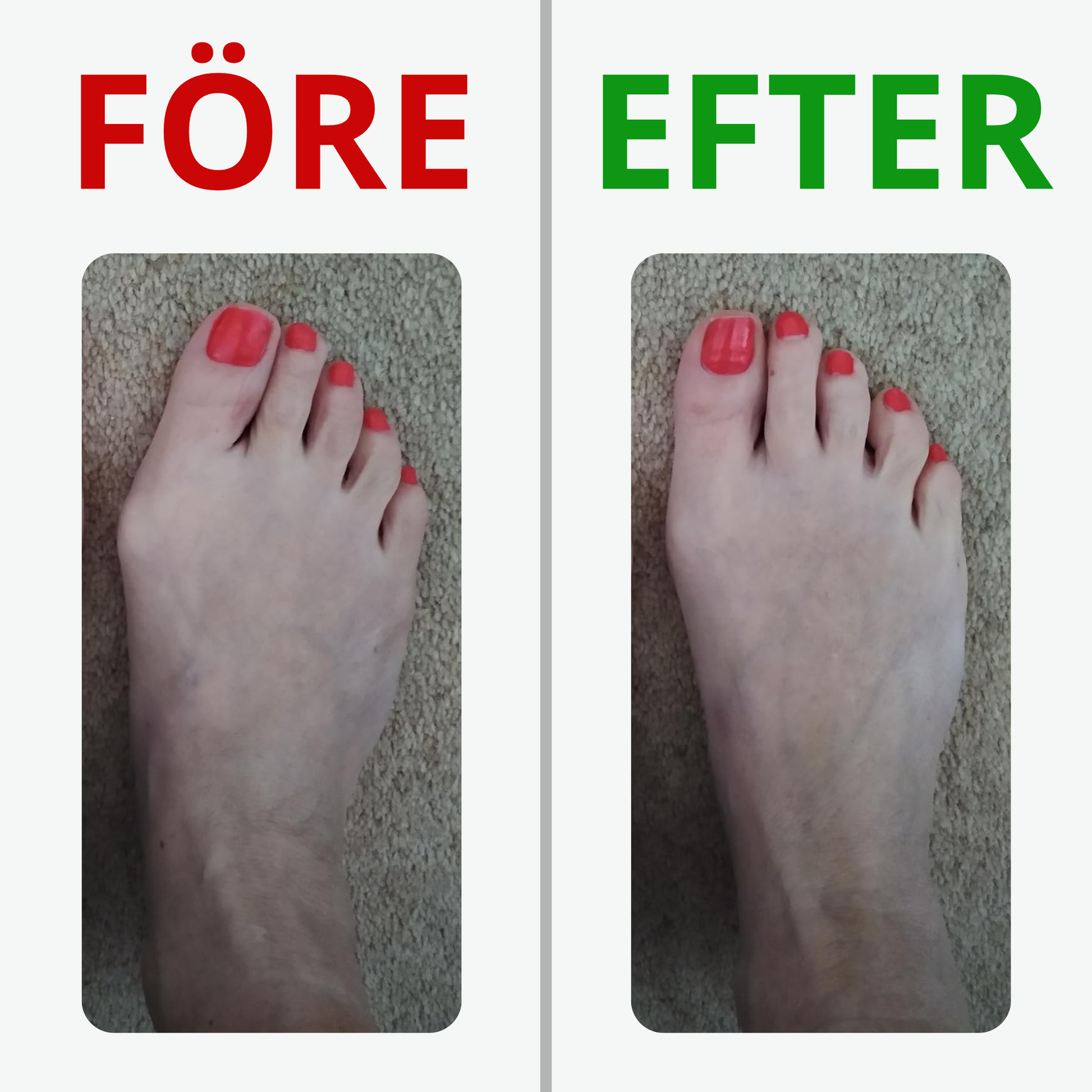2 år av ökande smärta – nu kan du inte stå i 30 minuter utan att fötterna brinner, och varje månad blir knölen större och smärtan värre. Utan behandling är operation oundviklig (25 000 kr, 6 MÅNADERS kryckor). Fotreglage™ bryter den onda cirkeln!